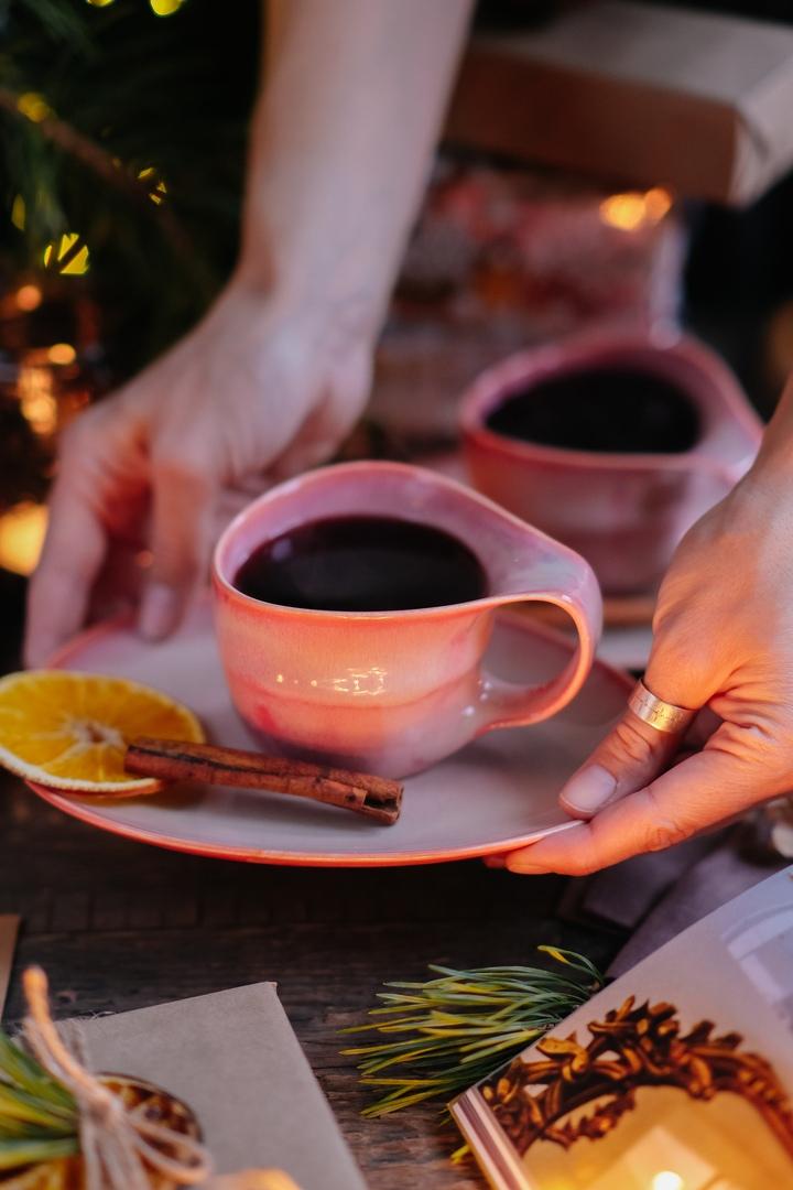 - Блюдце довольно большое, поэтому хватит места не только для кружечки, но и для вкусняшки, либо можно отдельно подать десерт